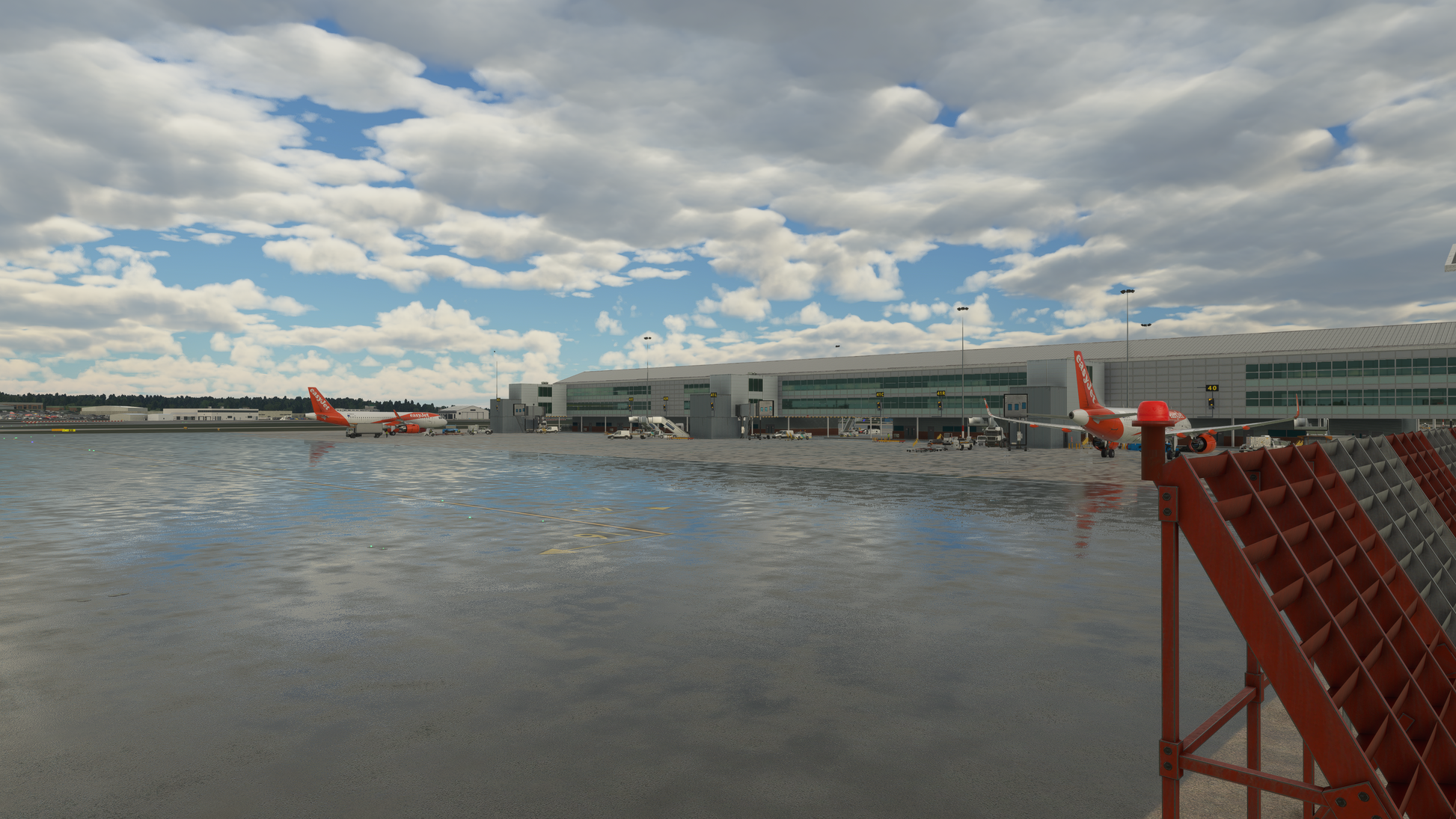It feels/looks very much like the real EGBB. My main disappointment is about the lack of modelling in the area in front of the terminal entrances. I hope that is part of the updating plan for this scenery.